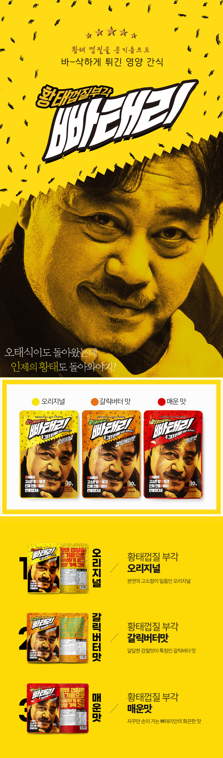 [무료배송] 나물캐는곰(본사) 빠태리 30g 황태껍질부각 튀각 명태껍질튀김 10개 세트 (맛선택가능)