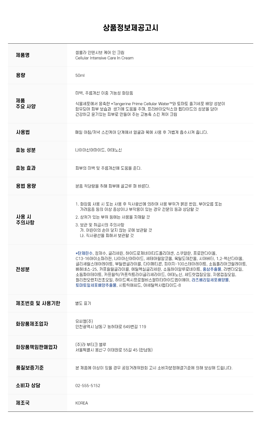 셀룰라 인텐시브 케어 인 크림 50ml